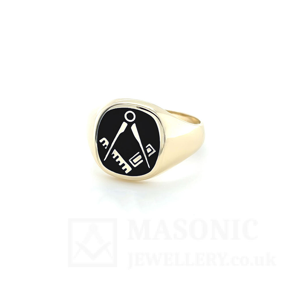 9ct Gold Reversible Cushion Head Square and Compass Masonic Ring