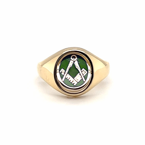 Limited Edition 9ct Yellow Gold Verdant Oval Square & Compass Masonic Ring