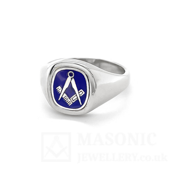 Silver Reversible Cushion Head Square and Compass Masonic Ring